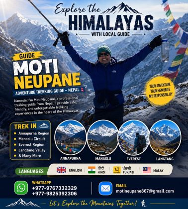 Moti Neupane is a seasoned trekking guide from Dhading, Nepal, with over 14 years of experience in the Himalayan trekking industry. He has extensive knowledge of Nepal’s mountain trails, high-altitude conditions, and local culture, making him a trusted and reliable guide for trekkers.